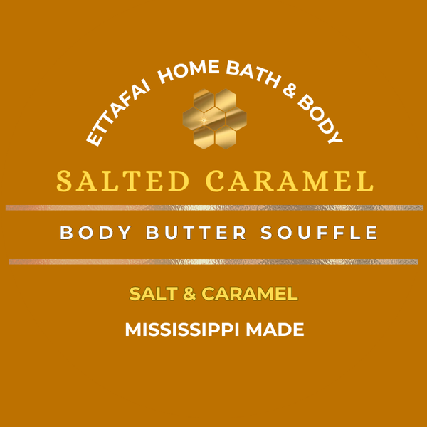 The "Salted Caramel - Body Butter Souffle" is a Sweet an indulging moisture retaining body butter is fragranced with warm Caramel drizzle oil and a sprinkle Salted infused in a Mango Butter and Shea Butter base with Kokum Butter, Apricot Oil, Jojoba Oil, Sweet Almond Oil, and Honey. These ingredients will help your skin retain its moisture, reduce itchy and flaky skin, and even out skin tone when paired with your overall daily self-care routine.